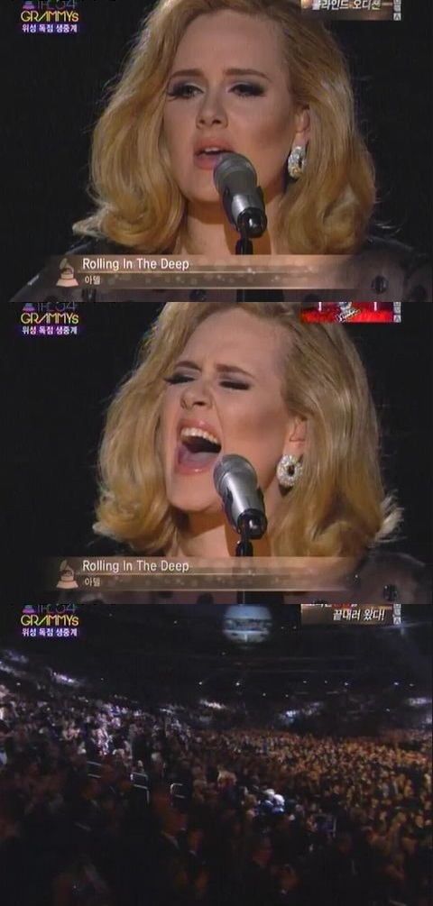 13일(한국시간) 미국 LA 스테이플 센터에서 열린 제54회 그래미 어워즈가 열린 가운데, 그래미 '올해의 노래'와 '올해의 팝 솔로' 상을 수상한 아델이 곡 '롤링 인 더 딥'을 열창했다.