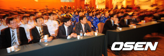 자정결의대회에 앞서 전 구단 프런트 및 선수단이 '승부조작 법적 책임'이라는 주제의 교육에 귀기울이고 있다.