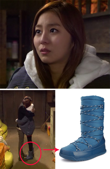 우여 곡절 끝에 다시 만난 주원과 유이가 달콤한 키스로 서로의 마음을 다시 확인하는 장면에서 유이의 캐주얼 하면서도 여성스러운 블루 컬러의 패딩 부츠가 시청자의 눈길을 끌었다.