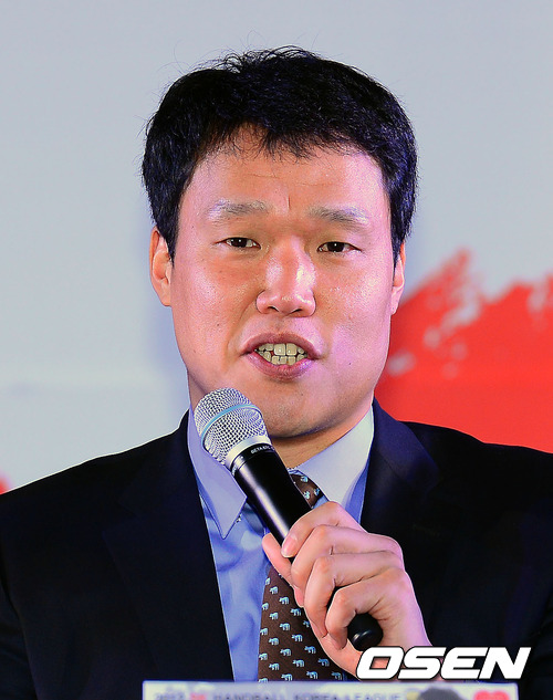 13일 오후 서울 올림픽공원 내 SK핸드볼경기장에서 열린 ‘2012 SK핸드볼코리아리그’ 미디어데이 & 전야제 행사에서 인천 도시공사 조치효 감독이 출사표를 던지고 있다.