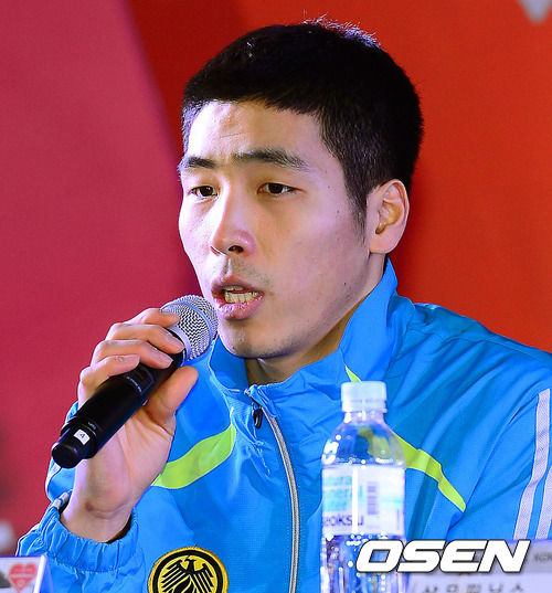 13일 오후 서울 올림픽공원 내 SK핸드볼경기장에서 열린 ‘2012 SK핸드볼코리아리그’ 미디어데이 & 전야제 행사에서 상무 윤시열이 말을 하고 있다.
