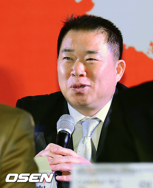 13일 오후 서울 올림픽공원 내 SK핸드볼경기장에서 열린 ‘2012 SK핸드볼코리아리그’ 미디어데이 & 전야제 행사에서 SK 루브리컨츠 김운학 감독이 출사표를 던지고 있다.
