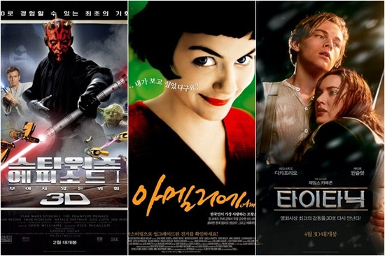 SF 액션 시리즈의 최고봉으로 손꼽히는 '스타워즈' 시리즈의 3D 개봉과 10년 만에 관객들의 곁으로 찾아온 영화 '아멜리에' 그리고 로맨스 영화의 대표 주자 영화 '타이타닉'이 그 주인공들.