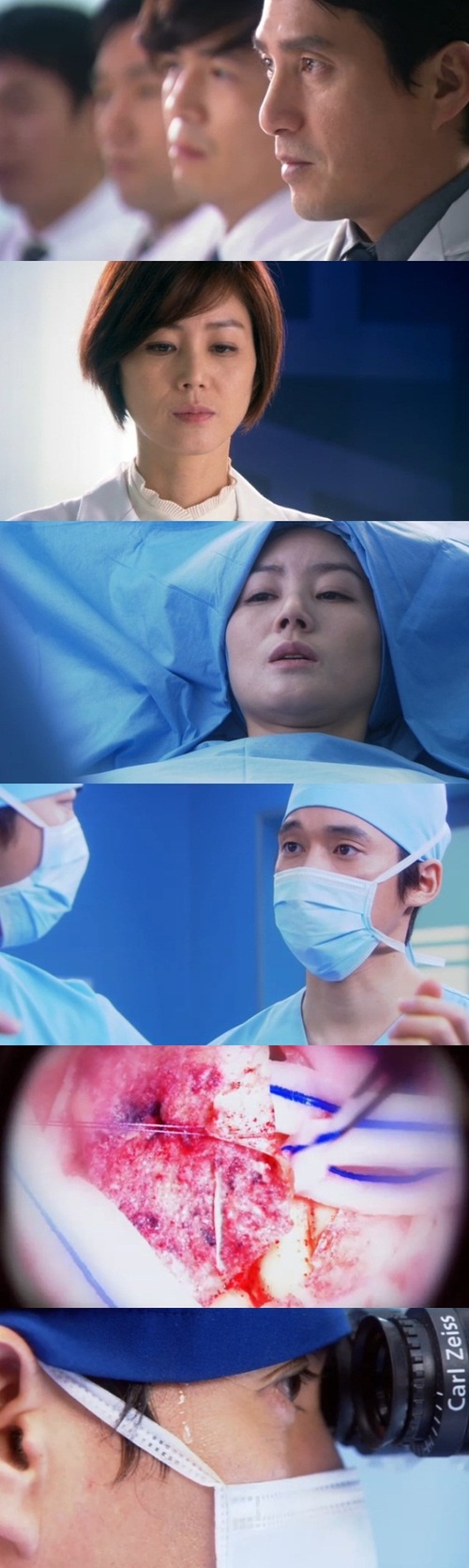 ‘신드롬’ 첫 회는 여타 의학드라마처럼 긴박한 상황으로 시작했다. 서울한국병원 마취과 과장이자 한국 재단 이사장의 고명딸 오은희(김성령)가 뇌에 생긴 종양제거 수술을 남편 차태진(조재현)에게 받았다.