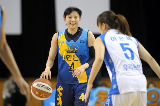 신한은행은 지난 13일 춘천 호반체육관에서 열린 신세계·이마트 '2011-12 신세계 이마트 여자프로농구' 원정경기에서 우리은행을 77-64로 제압했다.
