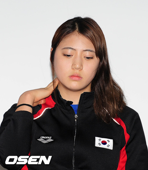 14일 오전 서울 송파구 방이동 올림픽파크텔 아레나홀에서 열린 2012 런던올림픽 한국 수영 국가대표팀 출전 수영복 공개 행사에서 정다래가 기자회견중 머리를 넘기고 있다.