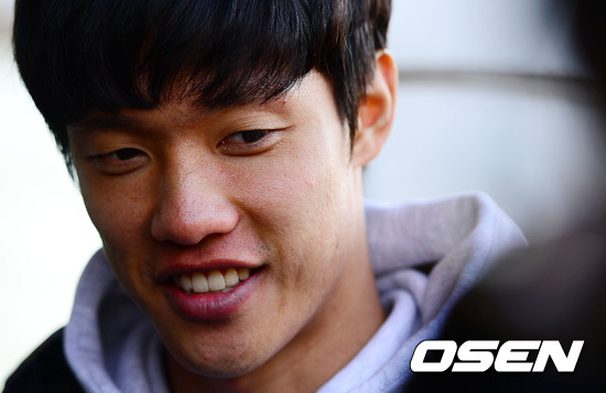 홍정호가 취재진과 인터뷰를 가지며 미소짓고 있다.
