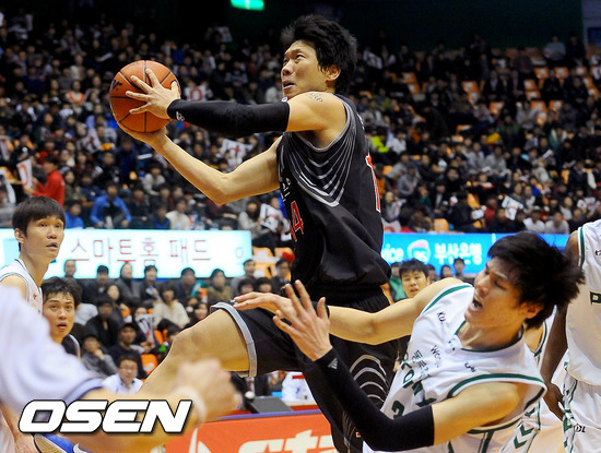 14일 오후 부산 사직실내체육관서 열린 '2011-2012 KB국민카드 프로농구' 부산 KT와 원주 동부의 경기 3쿼터 KT 박상오가 골밑슛을 시도하고 있다.