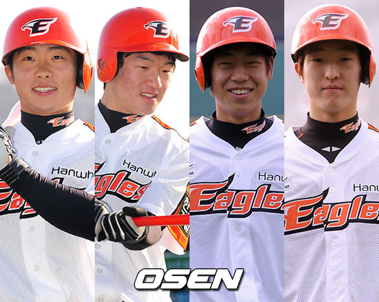 2009년 청소년대표 출신으로 천안북일고를 졸업하고 2라운드 전체 13순위로 한화에 입단한 우투좌타 김재우도 주목 대상이다. 지난해 2군서도 83경기 타율 2할9푼 21타점 16도루로 활약했다. 한대화 감독이 "센스가 좋아 힘만 붙으면 야구를 잘 할 것"이라고 기대를 갖고 있다. 발이 빠르고 공을 맞히는 데 자질이 있다.