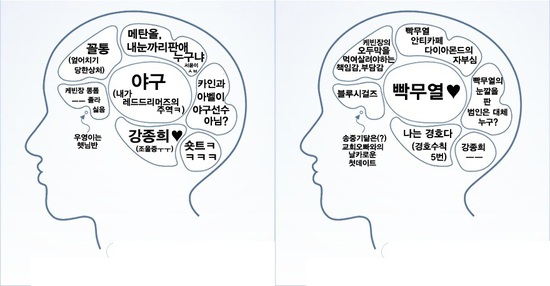 무열의 뇌 중심에는 ‘야구’와 함께 “내가 레드드리머즈의 주역”이라는 대사가 함께 들어있어 그의 콧대 높은 자존심을 그대로 드러낸다. 또 엎어치기의 상처를 줬던 꼴통 은재와 옛 사랑 종희(제시카 분)가 나란히 자리 잡고 있어 두 여자 사이에서 느끼는 그의 혼란스러움을 대변한다. 또한 카인과 아벨이 야구선수가 아니냐는 물음은 깨알재미를 더하고 있다.