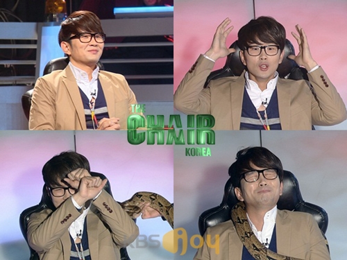 심박수를 유지하면서 각 단계별로 퀴즈의 정답까지 맞혀야 하는 신개념 퀴즈쇼 '더 체어 코리아'. 본 퀴즈에 앞서 진행된 OX 퀴즈에서 윤형빈은 MC 서경석이 “나는 이경규를 때리고 싶을 때가 가끔 있다”라는 질문에 심박수 100을 넘기며 당황하는 모습을 보이다가 결국 “그렇다”라고 대답, 스튜디오를 폭소의 도가니에 빠뜨렸다.
