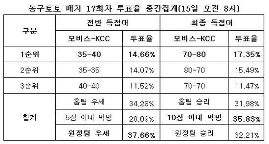 2011-2012시즌 농구토토 매치 17회차 투표율 중간집계 결과