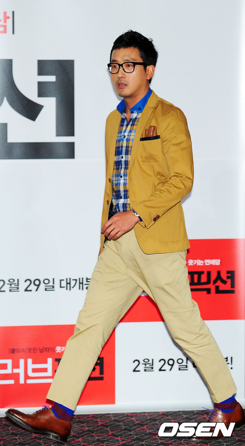 15일 오후 서울 CGV 왕십리에서 진행된 영화 ‘러브 픽션’ 언론배급시사회 및 기자회견에서 하정우가 무대 앞으로 걸어나오고 있다.