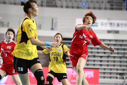 김정심과 남연지, 권근혜 등 기존 국가대표 출신들을 모두 투입하며 전반을 맞은 SK루브리컨츠는 상당히 거칠게 진행된 경기 속에서도 차분히 득점을 쌓아나가며 초반부터 광주도시공사를 압도했다.