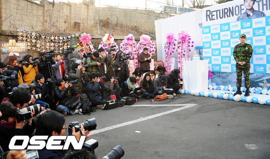 한류스타 이준기는 이날 오전 서울 용산 국방부 홍보지원대에서 전역 신고를 마치고 민간인으로 돌아왔다.