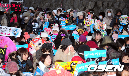 16일 오전 서울 용산구 국방부 앞에서 이준기 팬들이 이준기를 기다리고 있다
