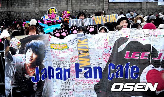 16일 오전 서울 용산구 국방부 앞에서 이준기 팬들이 이준기를 기다리고 있다