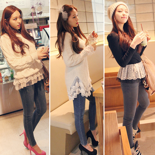 ▲ 겨울 니트에 레이스만 살짝 보여도 ‘봄옷’ 완성