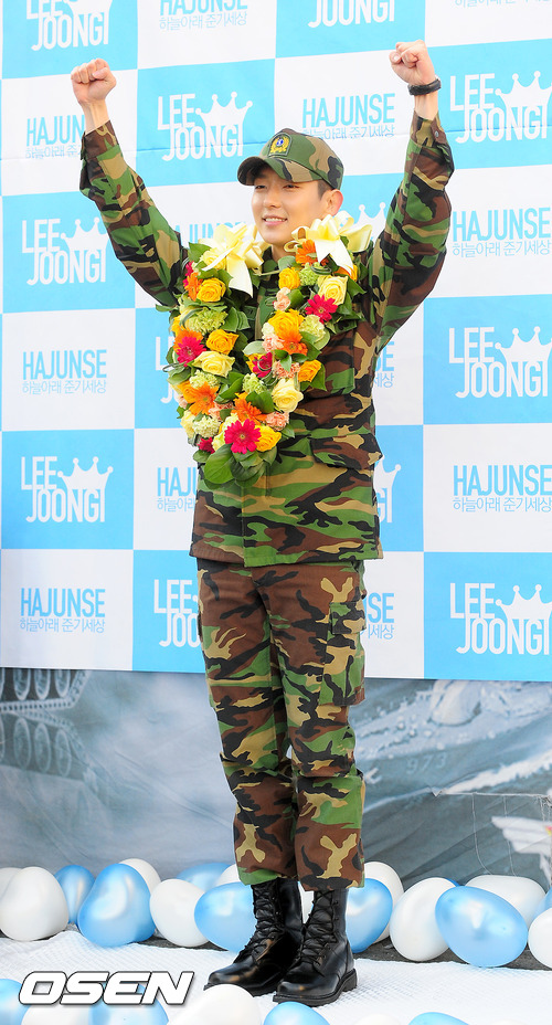 한류스타 이준기는 이날 오전 서울 용산 국방부 홍보지원대에서 전역 신고를 마치고 민간인으로 돌아왔다.
