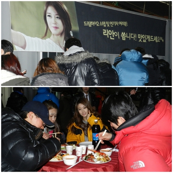 지연은 "우선 이런 자리를 마련해준 팬들께 감사드린다"면서 "추운 날씨에 고생하시는 배우, 스태프 분들과 따뜻한 식사를 함께 할 수 있어서 즐거웠다"고 감사 인사를 했다.