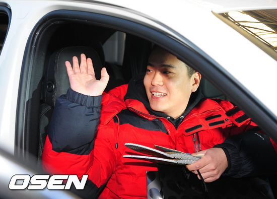 16일 오후 충청남도 논산시 육군 훈련소로 입소해 군 생활을 시작하는 그룹 SG워너비 김용준이 차에서 팬들에게 인사를 하고 있다.