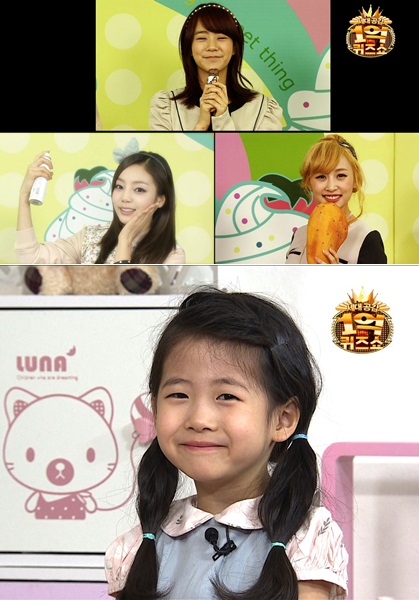 또한 최근 아역 연기자로 폭발적인 인기를 얻고 있는 SBS 박찬민 아나운서의 딸 민하 양은 6살의 인생 고민에 대해 허심탄회하게 털어놓으며 깜찍한 모습으로 퀴즈를 출제한다.