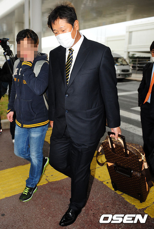 17일 오후 오릭스 버팔로스의 이대호가 미야코지마 캠프를 마치고 연습경기를 갖기 위해 일본 오키나와에 도착, 나하공항을 나서고 있다.