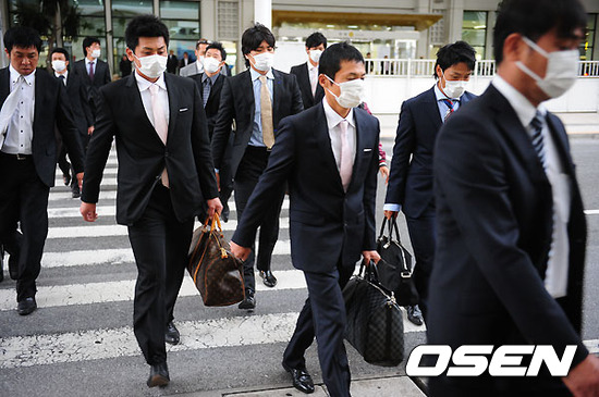 17일 오후 오릭스 버팔로스 선수단이 미야코지마 캠프를 마치고 연습경기를 갖기 위해 일본 오키나와에 도착, 나하공항을 나서고 있다.