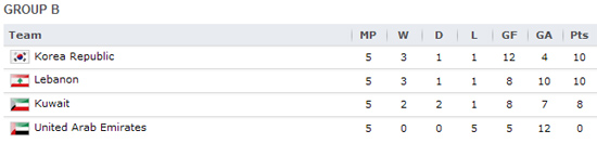 한국은 쿠웨이트에 이기거나 비길 경우 조 2위까지 주어지는 최종예선 티켓을 따내지만 질 경우 레바논이 아랍에미리트연합에 지지 않는 한 자력 진출이 좌절된다.