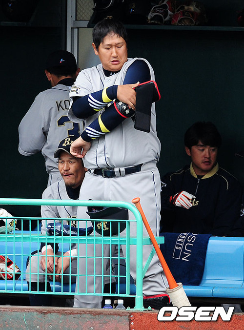 이대호는 18일 일본 오키나와 기노자구장에서 열린 한신 타이거스와 연습경기에서 4번타자겸 1루수로 두 번 타석에 들어서 1타수 무안타 1볼넷을 올리고 T오카다에게 1루 자리를 넘겼다.