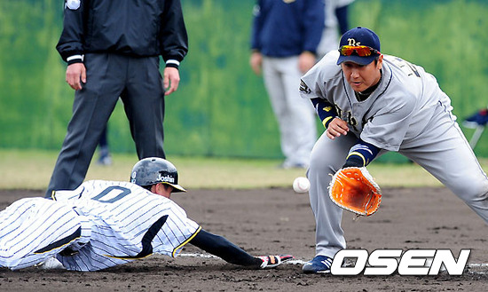 오릭스 이대호가 투수의 견제에 포구하고 있다./jpnews@osen.co.kr