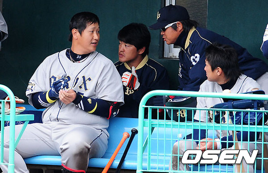 4회초 공격을 마친 오릭스 이대호가 더그아웃에서 코칭스태프와 이야기를 나누고 있다.다./jpnews@osen.co.kr