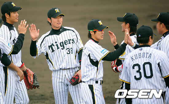 한신 선수들이 승리를 기뻐하고 있다./jpnews@osen.co.kr
