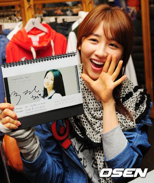 18일 오후 경기도 부천시 현대백화점 중동점 유플렉스 프레디 매장에서 열린 박하선 사인회에서 박하선이 자신의 사인이 된 달력을 들고 깜찍한 표정을 짓고 있다.
