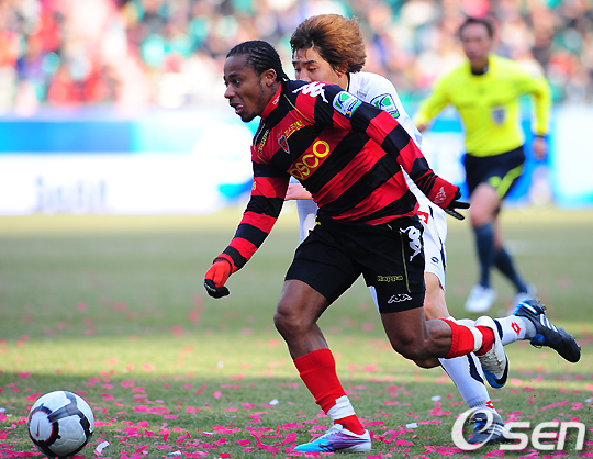 이날 결승골의 주인공은 황진성이었다. 황진성은 그림같은 프리킥골로 촌부리의 골문을 열며 경기의 주도권을 포항으로 완벽하게 가져왔다. 골을 기록하지는 못했지만 황진성만큼이나 맹활약을 한 선수가 또 있었다. 바로 아사모아.