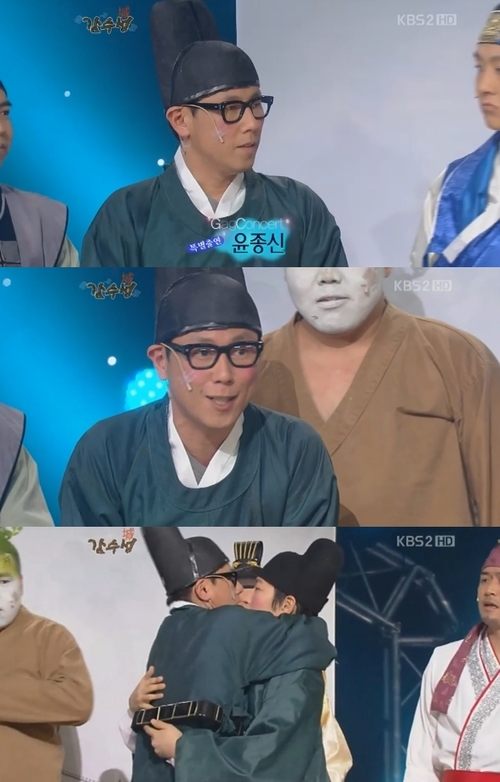 19일 오후 방송된 KBS 2TV '개그콘서트-감수성'에는 최고의 지략가이자 내시로 윤종신이 깜짝 등장해 눈길을 끌었다.