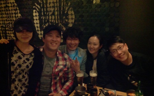 정준하는 20일 오전 자신의 트위터에 “오랜만에 우리 뮤지컬 ‘형제는 용감했다’ 원년 멤버들 우리가게서 뭉쳤다! 다들 늙었다. 오로라도”라는 글과 함께 사진을 게재했다.