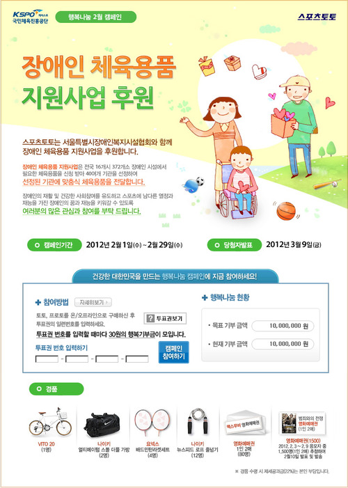 스포츠토토 행복나눔 2월 캠페인 이벤트 화면