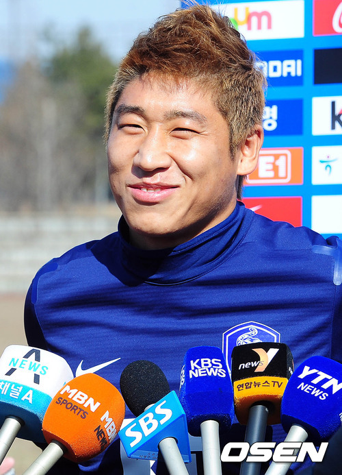 20일 오후 전남 영암군 현대삼호중공업 사계절잔디구장에서 열린 축구대표팀 훈련에서 이근호가 취재진들과 인터뷰를 하고 있다.