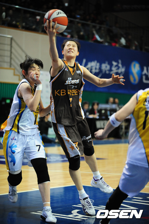 KB스타즈는 20일 안산와동실내체육관서 벌어진 2011~2012시즌 신세계 이마트 여자 프로농구에서 '와동불패' 신한은행을 80-74로 꺾었다. 강아정이 25점을 기록하며 승리의 수훈갑이 됐고 정선화가 23점, 변연하도 15점 6어시스트로 힘을 보탰다.