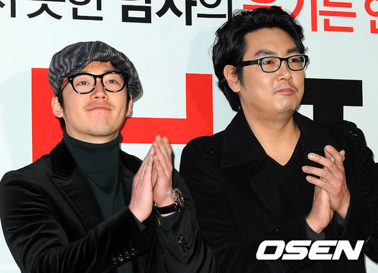 20일 오후 서울 메가박스 코엑스에서 열린 '러브픽션' (감독 전계수) VIP 시사회에서 배우 장혁과 조진웅이 포토타임을 갖고 있다.