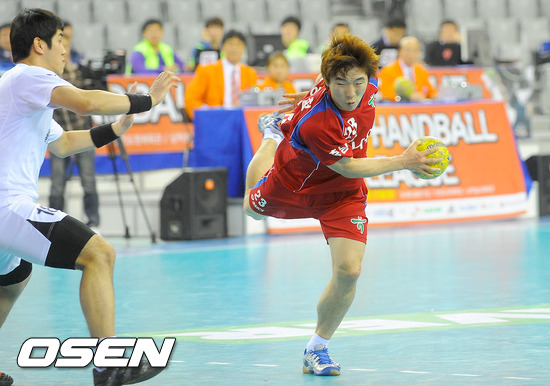 20일 서울 올림픽공원 내 SK핸드볼경기장에서 열린 '2012 SK핸드볼코리아리그' 남자부 경기서 김성헌 감독이 이끄는 웰컴론코로사가 충남체육회에 24-22 진땀승을 거뒀다. 8골을 넣은 김장문과 7골을 넣은 정수영이 웰컴론코로사의 승리를 이끈 주역이었다. 김장문은 이날 MVP로 선정되며 승리의 기쁨에 MVP의 영광까지 누렸다.