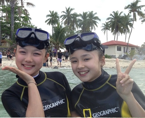 사진 속 김유정은 tvN ‘코리안 갓 탤런트’ 출신 댄스신동 낸시와 함께 바다에서 스킨스쿠버 교육을 받고 있는 중인 듯, 스쿠버 수경과 잠수복을 입고 활짝 미소 지었다. ‘해품달’ 출연 당시 보여준 성숙함과는 달리 마냥 활기차고 평범한 어린아이의 모습이다.