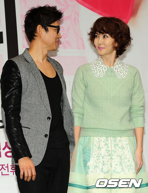 21일 오후 서울 강남구 논현동 임피리얼 팰리스 호텔 두베홀에서 열린 KBS 2TV 새 주말드라마 ‘넝쿨째 굴러온 당신’ 제작발표회에서 유준상과 김남주가 포토타임 중 얘기를 나누고 있다.