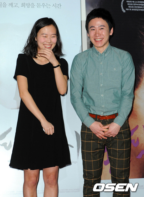 21일 오후 서울 메가박스 동대문에서 열린 '줄탁동시' (감독 김경묵) 언론시사회에서 배우 김새벽과 이바울이 포토타임 중 수줍게 웃고 있다.