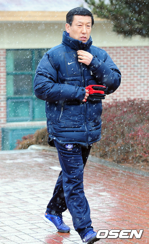 21일 오후 전남 영암군 현대삼호중공업 사계절잔디구장에서 열린 축구대표팀 훈련 셋 째날, 최강희 감독이 훈련장에 도착하고 있다.