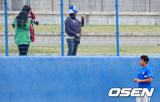 경기전 삼성 오승환이 팬들에게 포즈를 취해주고 있다.