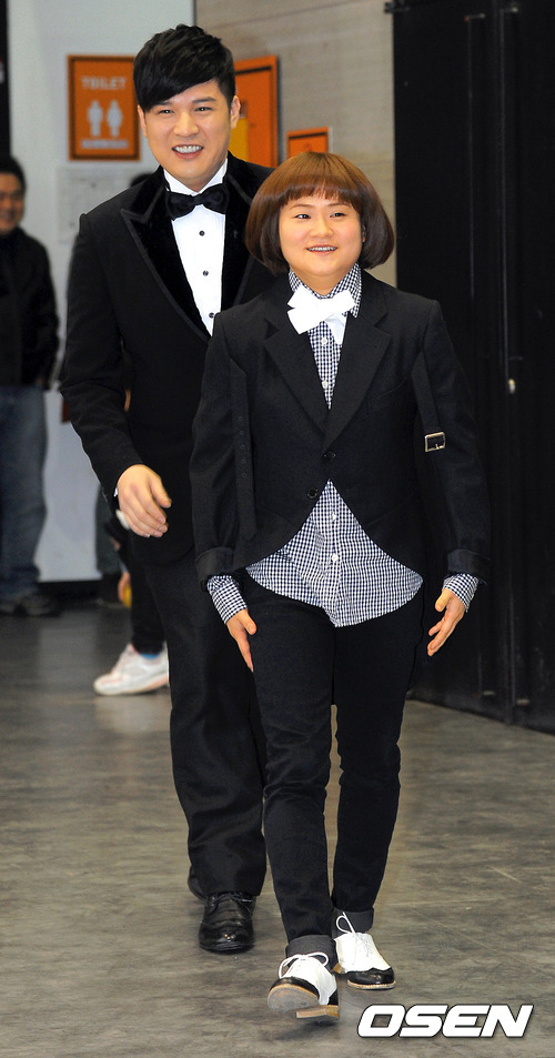21일 오후 서울 광장동 악스홀에서 진행된 MBC 뮤직 차트쇼 프로그램 '쇼 챔피언' 기자간담회에서 신동과 김신영이 입장하고 있다.
