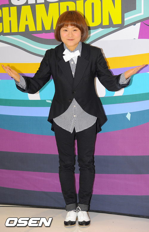 롤업팬츠와 흰색 보타이로 귀여운 이미지를 연출한 김신영은 "예뻐졌다"는 말에 부끄러운 듯 미소를 지어보였다.