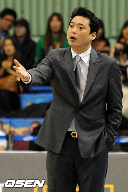 21일 오후 서울 잠실 실내체육관에서 열린 '2011-2012 KB국민카드 프로농구' 서울 삼성과 부산 KT의 경기, 2쿼터 삼성 김상준 감독이 심판을 향해 어필하고 있다.